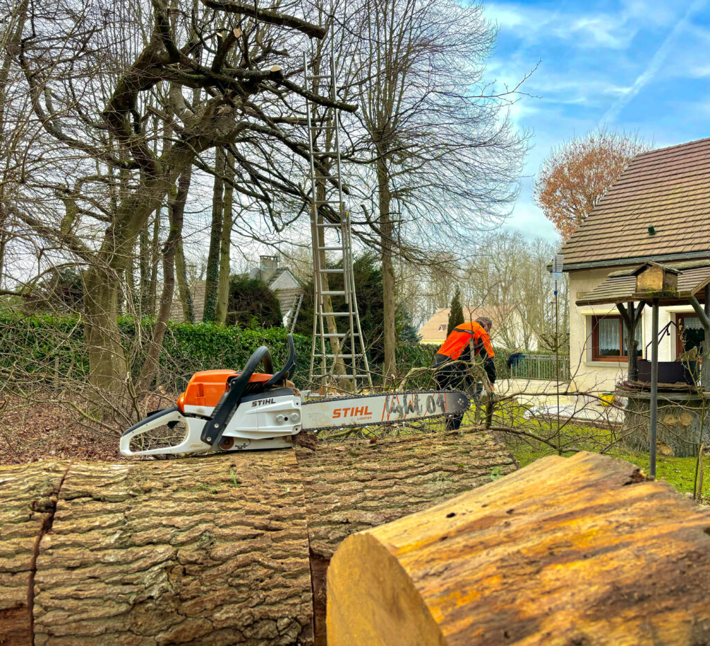 L’abattage d’arbres fait également partie de nos compétences pour les situations où la taille ne suffit pas.